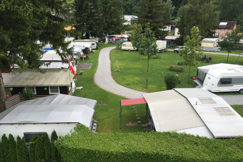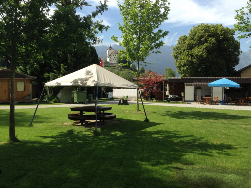 Sie campieren auf einer gepflegten ebenen Rasenfläche. Getrennt durch einen grossen Platz (gelegentlicher Markt) liegt der Werdenbergersee mit dem historischen Städtchen und dem Schloss Werdenberg.