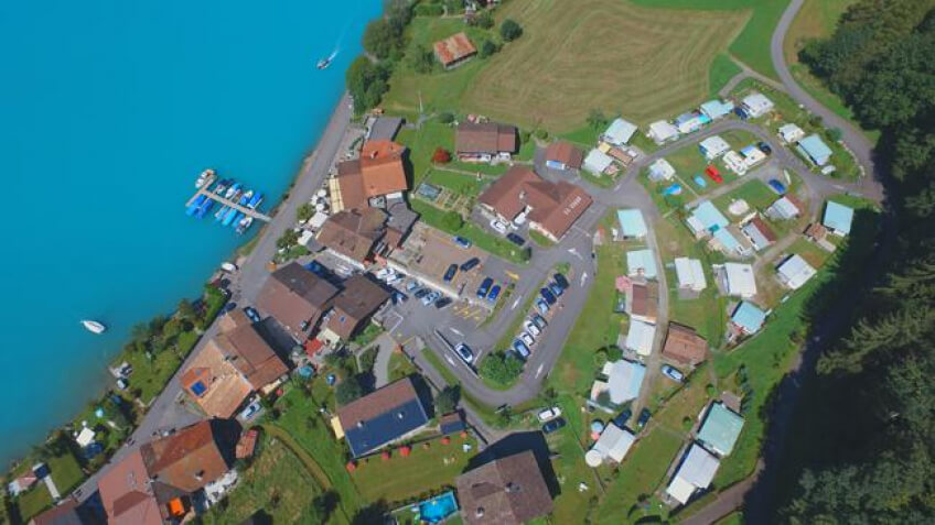 Nur zwei Minuten zu Fuss vom Ufer des Brienzersees entfernt, gleich oberhalb der malerischen Chalets, die die ruhige Seestrasse säumen, liegt zwischen Wald und Wiesen der Camping Du Lac. Stellen Sie Ihren Wohnwagen oder Ihr Wohnmobil ab, und geniessen Sie die traumhafte Ruhe, die Aussicht auf die umliegenden Berge oder im Sommer ein erfrischendes Bad im klaren und sauberen Wasser des Brienzersees.