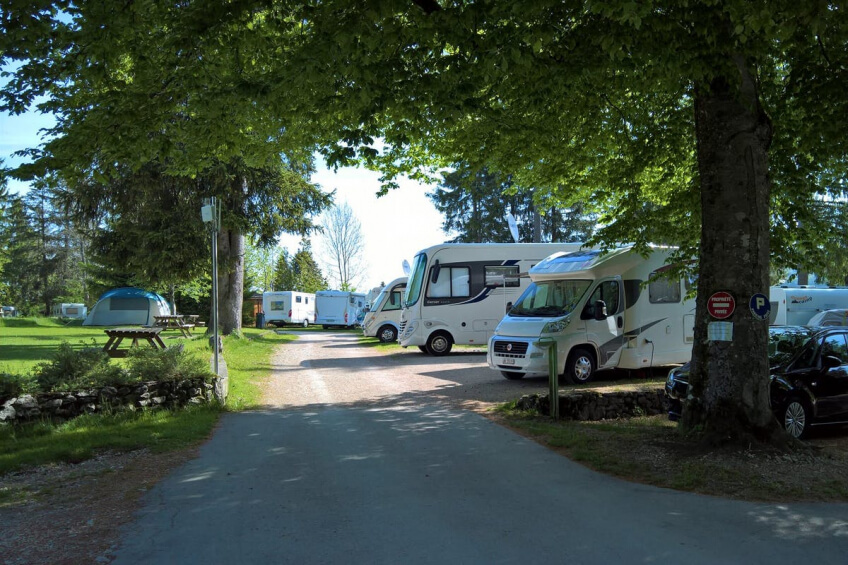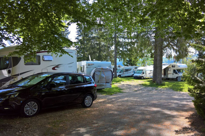 Ruhige Lage am Waldrand neben dem Stadtschwimmbad. Ideal für Schulen und Familien. In der Ortschaft, der Markierung Campingplatz/Schwimmbad folgen.