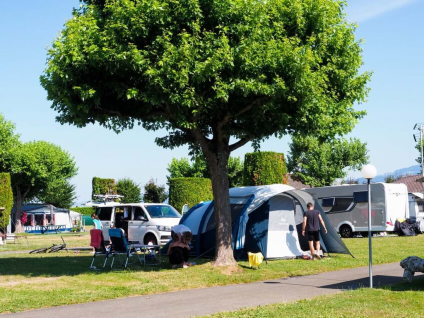 Lust auf vergnügliche Badeferien? Dann sind Sie beim Camping Bouveret-Plage an der richtigen Adresse: Sie werden den nahen Sandstrand mit seiner Wasserrutschbahn voll geniessen! Aber auch der Campingplatz selbst mit seinen erstklassigen Einrichtungen und all seinen Annehmlichkeiten (geheiztes Schwimmbad, Tennis, Toboggan, Surfing, Restaurant und Selbstbedienungsladen, und nur 100 m entfernt: der neue, attraktive AQUAPARC bietet Ihnen Gewähr für ungetrübte Campingferien. Abseits vom lärmigen Verkehr, am Ostufer des Genfersees gelegen, finden Sie in Bouveret-Plage eine Oase der Ruhe und der Entspannung.