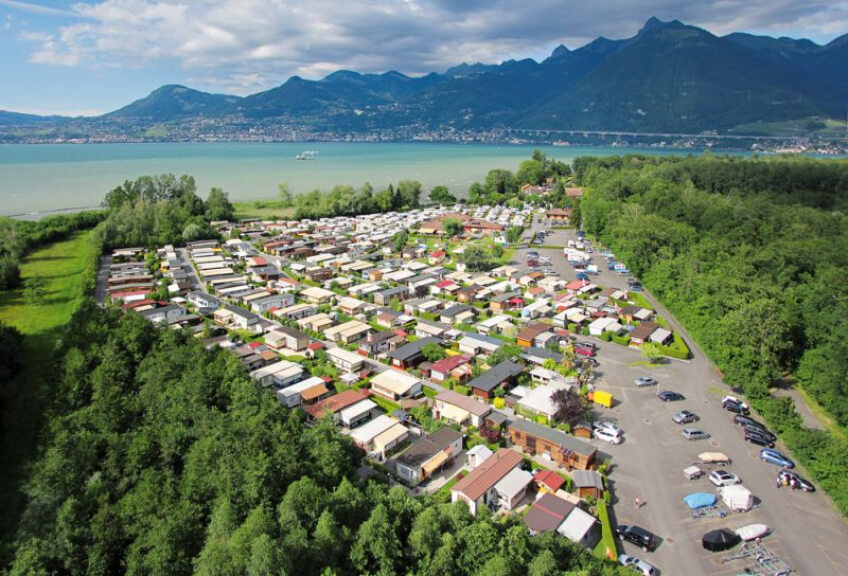 Der Campingplatz befindet sich nur 9 km von Montreux entfernt, zwischen Wald und See, im ebenen Naturreservat "Les Grangettes". Der Campingplatz ist für Familien sehr gut geeignet, bietet er neben einem grossen Kinder-Spielplatz auch einen langen Strand mit geringer Wassertiefe. Naturliebhaber finden Ruhe und Entspannung. Die herrliche Aussicht auf den Genfersee und das Schloss Chillon vervollständigen das spezielle Ambiente des Campingplatzes.