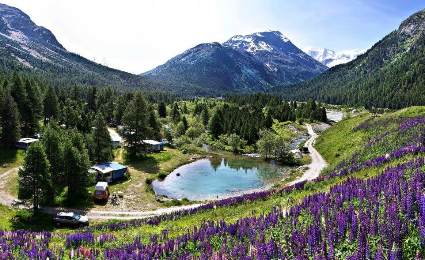 Mitten in einer alpinen Naturlandschaft liegt der Campingplatz Morteratsch. Geprägt wird der einzigartige Erholungsraum von Bächen, Seen, kleinen Wäldern und seiner atemberaubenden Aussicht auf die berühmten Gipfel des Berninamassivs. Die moderne Infrastruktur weist nicht nur einen hohen Komfortstandard auf, sondern trägt auch der Ökologie massgebend Rechnung und präsentiert sich so im Einklang mit der Natur.
