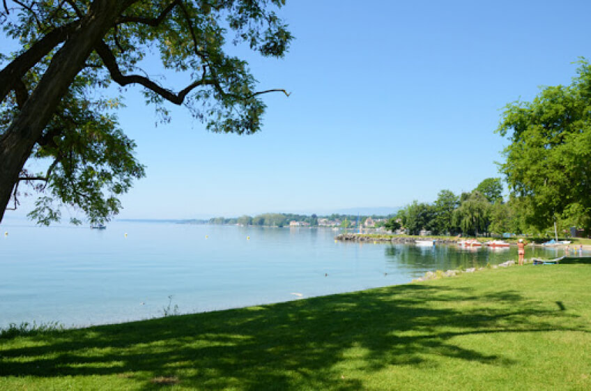 Der ideal am Ufer des Genfer Sees gelegene Camping des Vernes empfängt Besucher von März bis September in einer idyllischen Umgebung.
