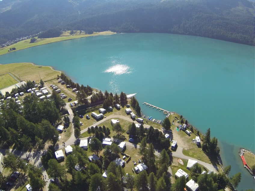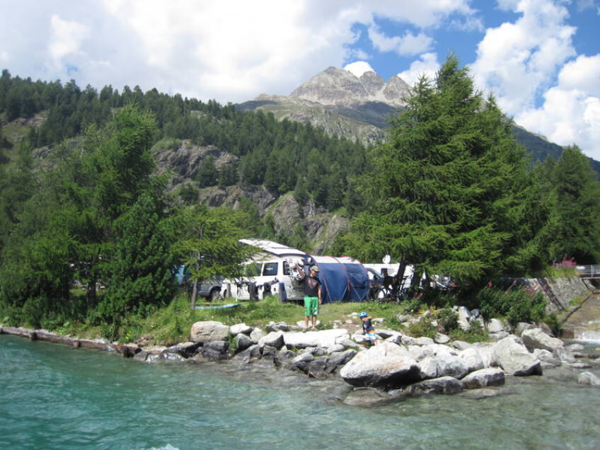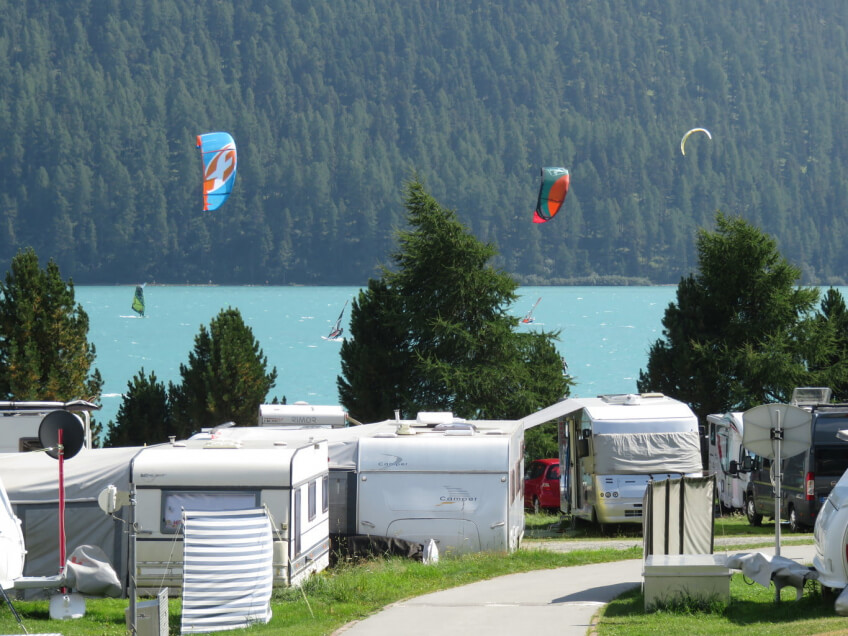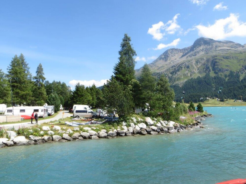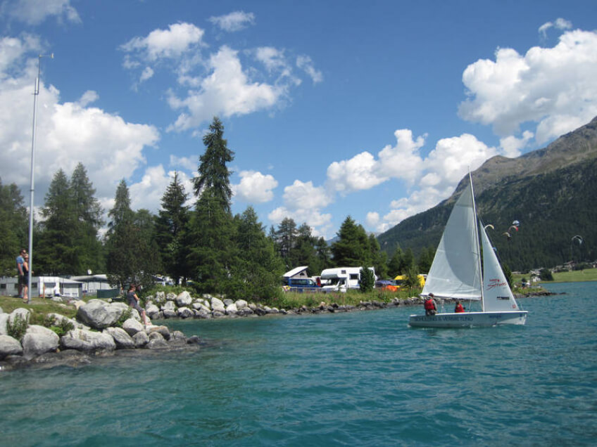 Auf dem Campingplatz Camping Silvaplana kann man Baden in natürlichem Gewässer.