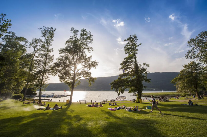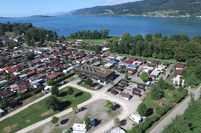 Der Hotel Camping Sutz liegt am Südufer des Bielersees, 6 km von Bielentfernt. Ab Biel ist dieser mit der Aare Seeland Mobil Bahn nach 10 Minuten Fahrt und 8 minütigem Fussmarsch leicht erreichbar. Am Campingplatz vorbei führen die offiziellen Velorouten 5 und 8.Eine grosszügige Badewiese mit Flachufer, Badesteg und Feuerstellenladen zum Verweilen ein. Für Abwechslung sorgen ein Beachvolleyballfeld, ein Tischtennistisch, eine Boccia-Bahn, eine grosse Spielwiese und Kinderspielplätze. Vom Restaurant aus geniessenSie eine herrliche Sicht über den Bielersee bis hin zur St.Petersinsel.