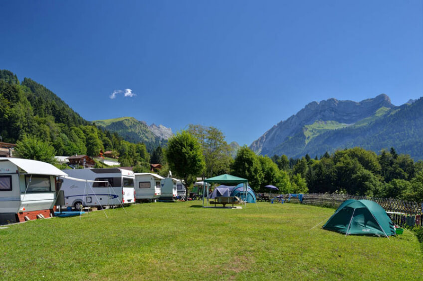 Sonnengebadet und mit einem absolut einzigartigen Ausblick auf die Berge, befindet sich der südlich ausgerichtete Campingplatz gegenüber des „Dents du Midi“ und dem Muveran, à Gryon, kleines Dorf im Herzen der Waadtländer Alpen. Dieses einzigartige Dorf ist ein Teil der schönsten Station der Waadtländeralpen, Villars-Gryon-Les Diablerets, das Zentrum von Villars liegt in 2km Entfernung und präsentiert seine Gästen mit Stolz eine gedeckte Kunsteisbahn, eine Bowlinganlage, ein Schwimmbad mit Wellness und einer Wasserrutschbahn im Sommer, ein Tenniszentrum mit 6 Indoor- und 5 Outdoorplätzen.
