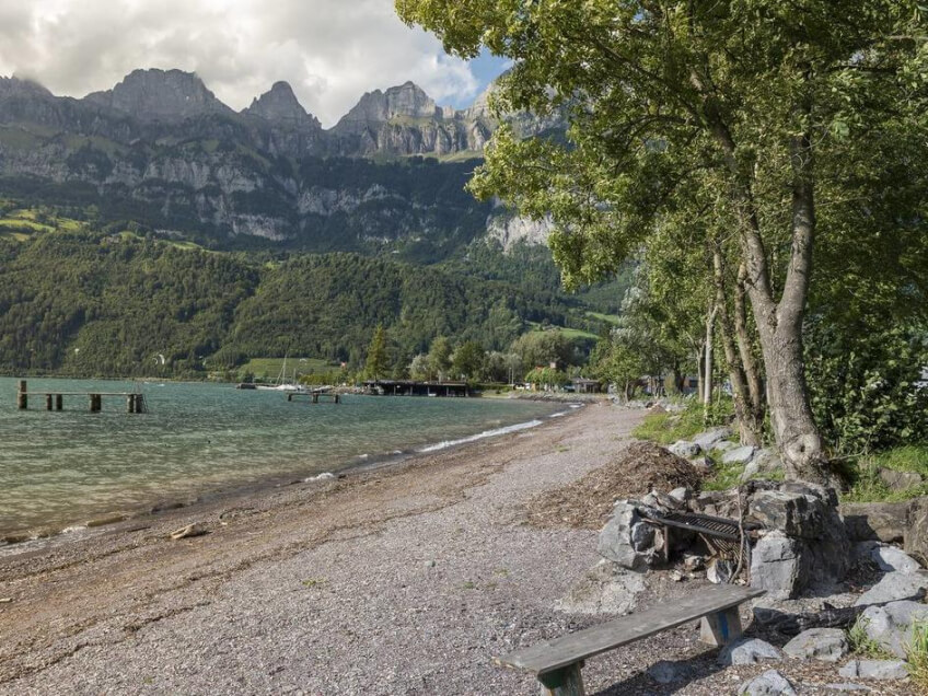Auf dem lauschigen Campingplatz direkt am Walensee mit Blick auf die imposanten Churfirsten stehen zahlreiche Stellplätze für Camping-Fans. Dank der grossen Fläche geniesst jeder genug Privatsphäre und der rund 200 Meter grosse Badestrand mitsamt gepflegtem Rasen bietet sich wunderbar als Spiel- und Liegewiese an. Mehrere Feuerstellen, eine Rezeption, ein Kiosk sowie einen Aufenthalts- und Trockenraum ergänzen die Infrastruktur. Zudem gibt es genügend Toiletten und Duschen, Waschmaschinen und Trockner sowie Kochgelegenheiten.