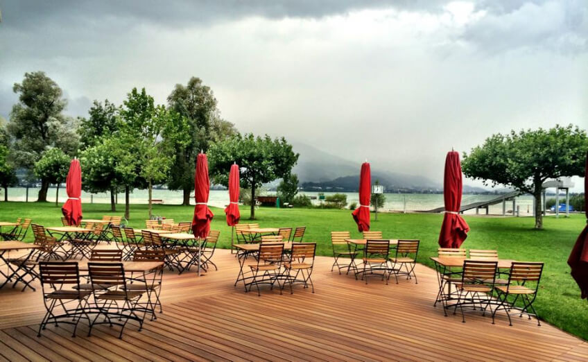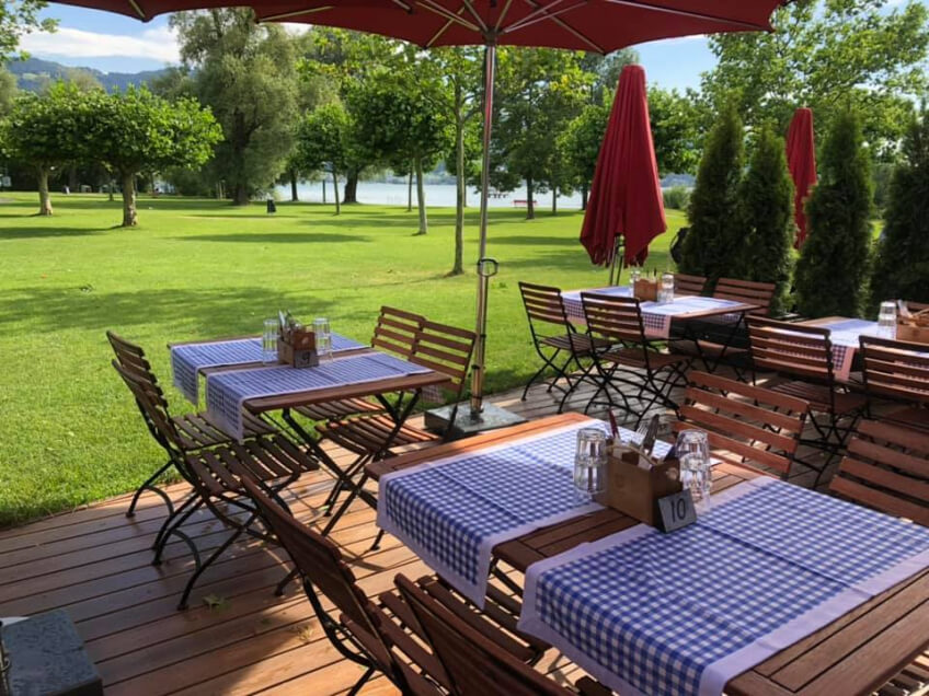 Auf der Anlage befindet sich ein separat geführtes Bistro/Kiosk und ein Restaurant www.strandbeiz-stampf.ch, dort können Liegen und Sonnenschirme ausgeliehen werden und Brennholz für die Grillstelle gekauft werden.