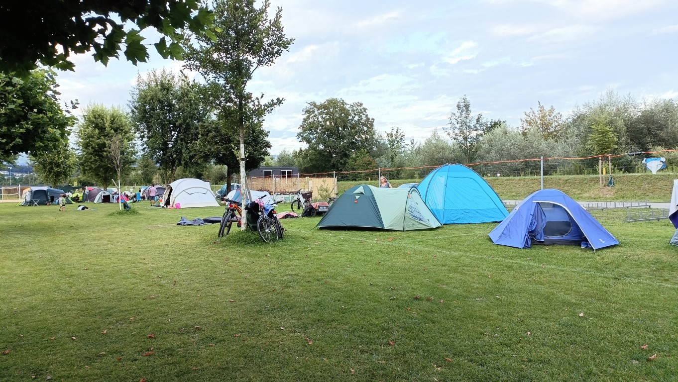 Der Zeltplatz kann nicht mit Fahrzeugen befahren werden, Parkplätze befinden sich kostenpflichtig auf der gegenüberliegenden Seite des Baches. (Stampfstrasse 100, Jona)