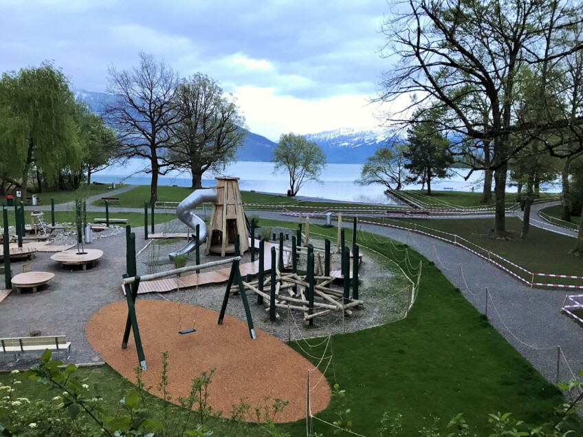 Auf dem Campingplatz TCS Camping Gwatt Thunersee kann man Baden in natürlichem Gewässer.