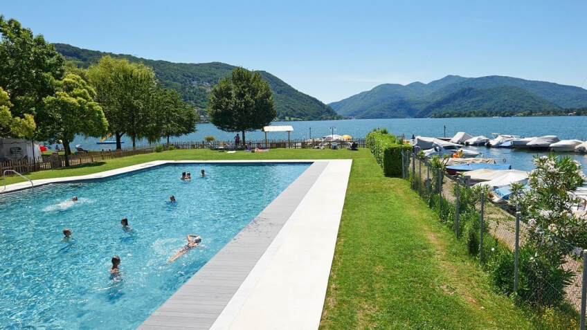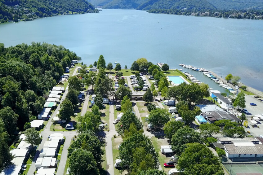 Auf dem Campingplatz TCS Camping Lugano-Muzzano kann man Baden in natürlichem Gewässer.