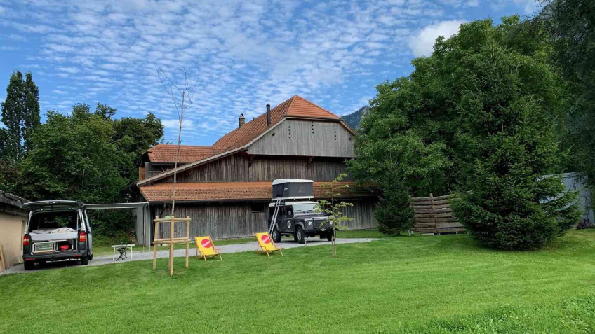 Ruhiger Stellplatz mit Aussicht auf den Sonnenuntergang am Gantristgebirge. Wenn Sie keine Lust haben selber zu kochen ist das Restaurant von Donnerstag bis Sonntag geöffnet.